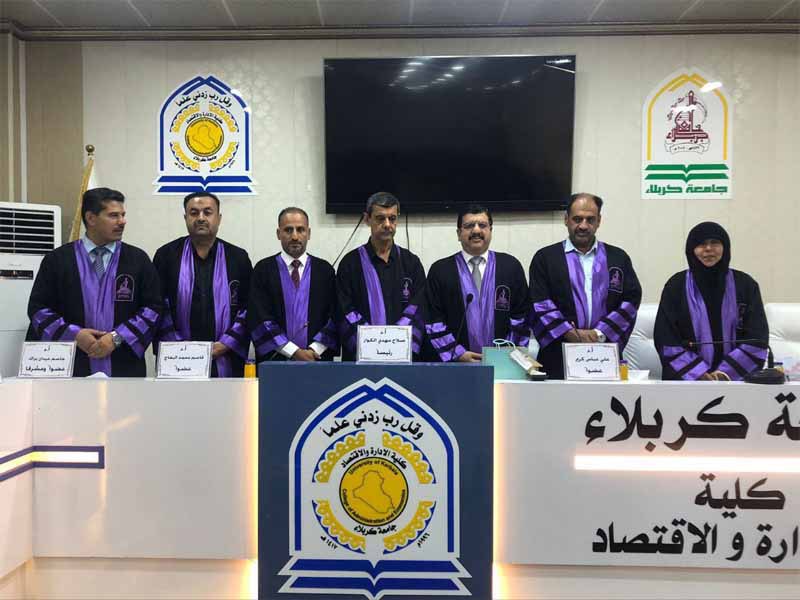 The lecturer in the Department of Financial Studies at the Post-graduate Institute for Accounting and Financial Studies at the University of Baghdad, Prof. Dr. Ali Abbas Karim, participated in the discussion committee for the doctoral dissertation of the Accounting Department in the College of Administration and Economics – University of Karbala by the student Bassem Abdullah Kazem for his thesis tagged (The relationship between information asymmetry and the quality of corporate governance in The shadow of voluntary disclosure and its impact on decision-making).