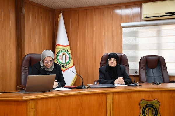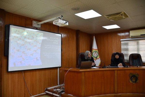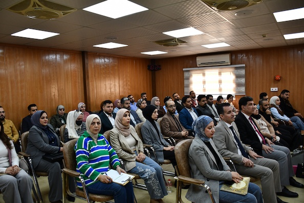 Under the supervision of the Dean of the Post-graduate Institute for Accounting and Financial Studies, Assistant Professor Dr. Ali Mohammed Thajil Al-Maamouri, the Institute’s Continuing Education Unit, as part of Global Entrepreneurship Week activities, held a workshop entitled “Strategies for Rationalizing Water Consumption and Achieving Sustainable Development” in the Institute’s hall. The workshop was presented by the Head of the Financial Studies Department, Assistant Professor Dr. Wafaa Hussein Salman Al-Haidari, and Assistant Professor Dr. Khulood Hadi Aboud, a faculty member in the Financial Studies Department at the Institute. A number of faculty members and postgraduate students from the Institute participated in the workshop.